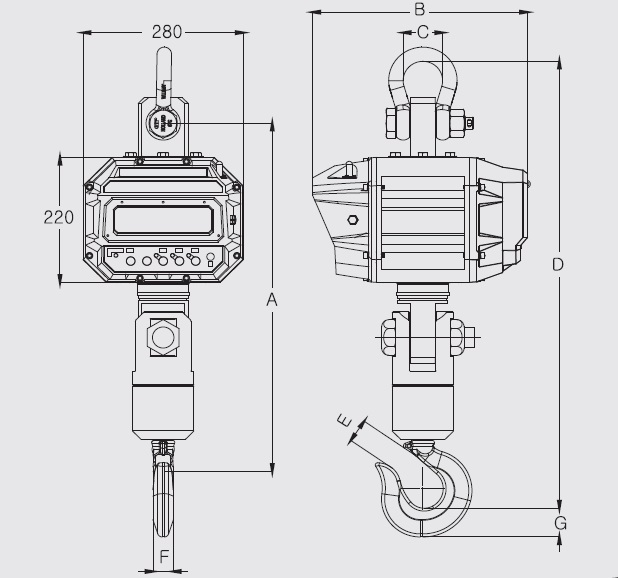 Поворотный механизм крюка (360˚) | Предназначен для устранения дополнительной нагрузки на датчик, связанной с перекручиванием груза в подвешенном состоянии, – показания не искажаются |